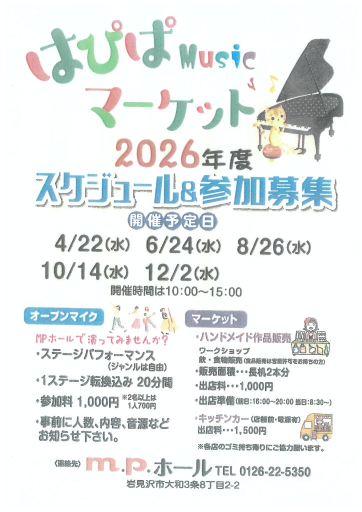 ●お問合せ:m.p.ホール 0126-22-5350