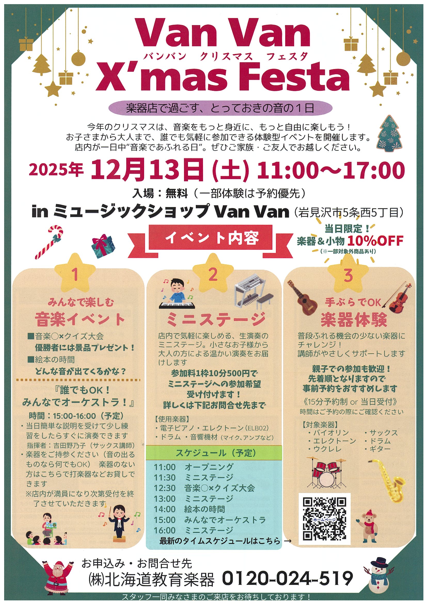 ●日時:2025年12月13日(土) ◇11:00~17:00 ●会場:ミュージックショップ Van Van(岩見沢市5条西5丁目) ●料金:無料(一部体験は予約優先) ●お申込・…
